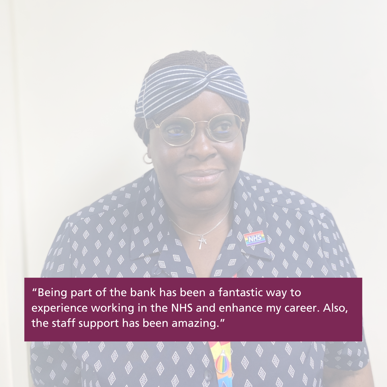 Anybody who registers to the Bank can select shifts from home via an app, and will also be entitled to NHS benefits such as our great pension scheme, discounts and option to earn extra money through a winter incentive programme.